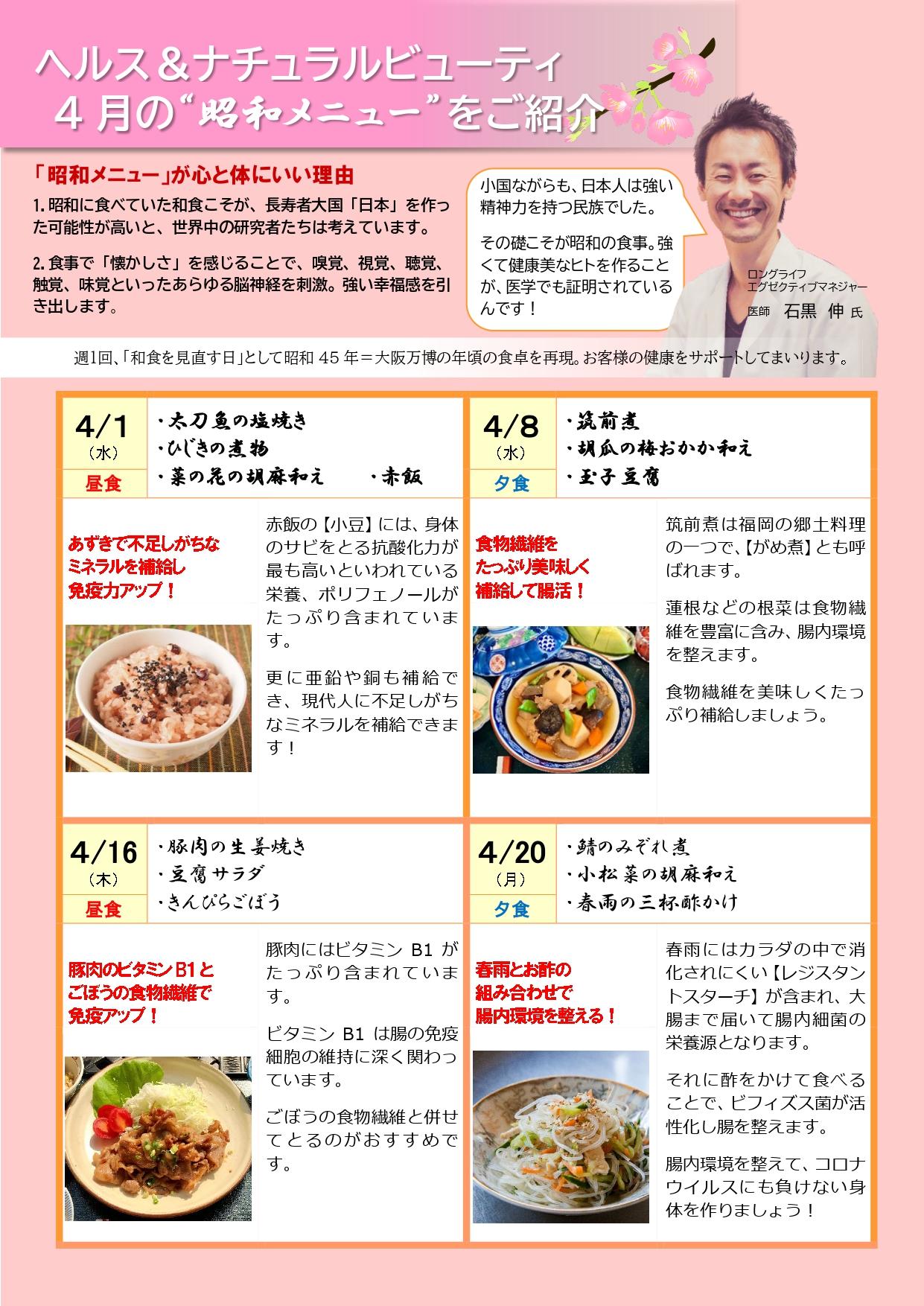 HOME > ロングライフタイムズ オンライン > 日本ロングライフ(株) 石黒医師監修「昭和メニュー」4月分が決まりました