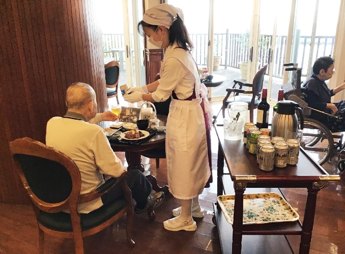 日本ロングライフでは、お客様および職員のコロナ感染予防対策として、マスクの着用・アルコール消毒などによる衛生管理や、健康チェック・定期的な検温などの体調管理を徹底しています。外出もお控えていただいている中、このような形で夏の到来を感じていただくことができ、お客様からは喜びのお声をいただいております。