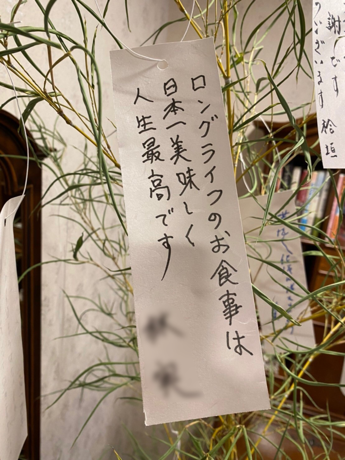 当社のグループ会社である日本ロングライフ株式会社が運営する介護付き有料老人ホーム「ロングライフ葛西」 にて、お客様による七夕の短冊作りを行いました。短冊には、お客様の願い事のほか、ロングライフへの感想が書き込まれたものもあり、「ロングライフのお食事が日本一」との嬉しいお言葉をいただくことができました。ロングライフグループでは今後もスタッフ一同、お客様のさらなる満足向上に努めてまいります。