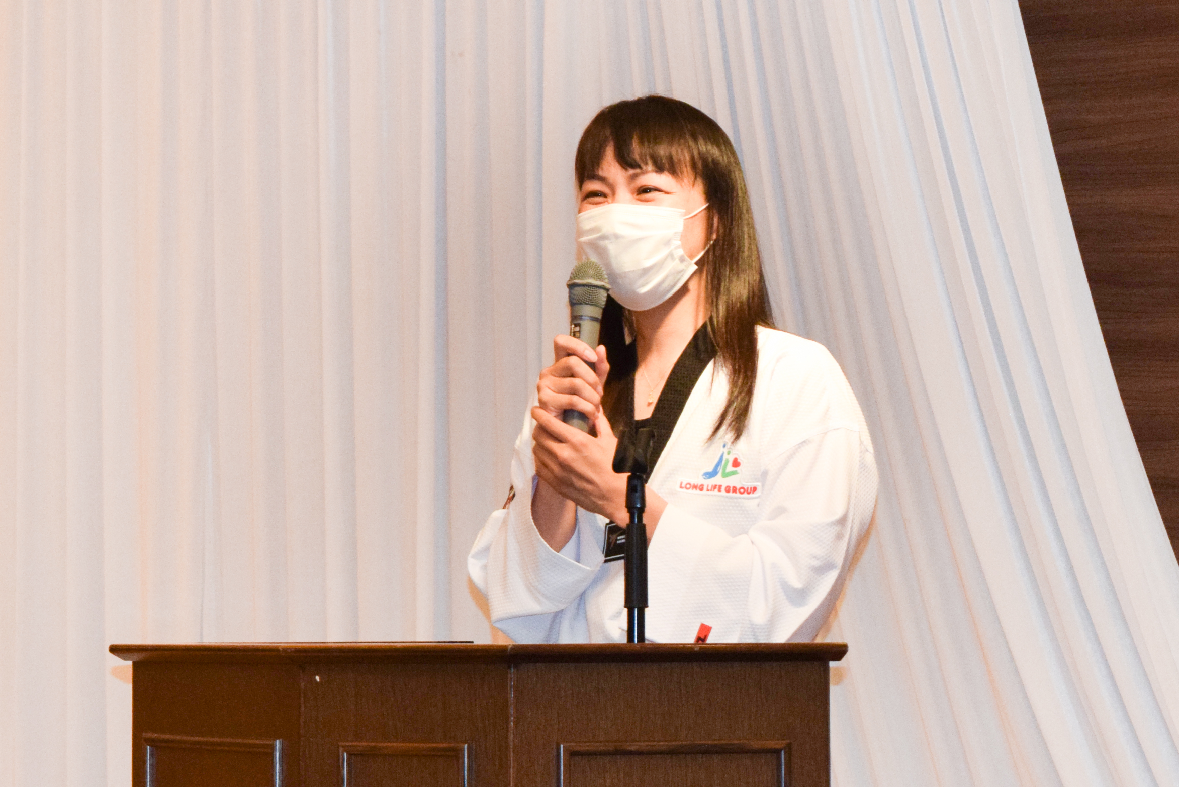関西のさまざまな企業から集まられた約80名の方を前に、岡本さんがオリンピックでの体験談や夢を持つことの大切さについて講演されたほか、ロングライフの取り組みについてもご紹介させていただきました。